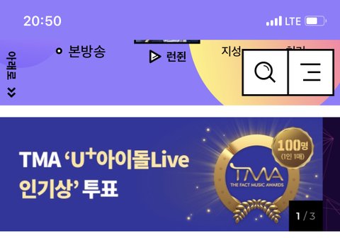저 다음은 U+아이.돌 live 어플로 들어가자 인기상 투표할 차례야