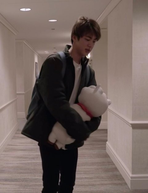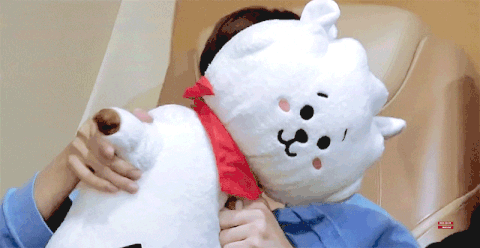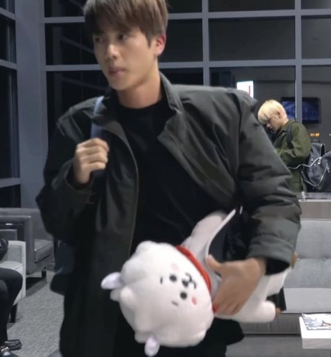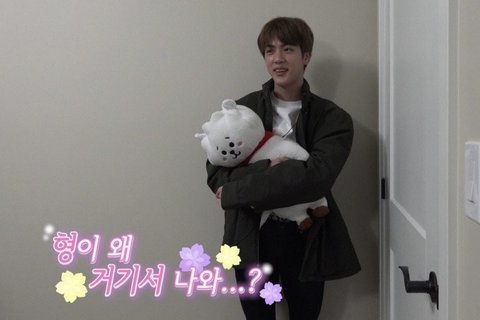 이거는 홉이가 목상태가 안좋아서 컨디션 별로였는데 진이가 힘 되어주려고, 힘내라고 자기 분신과도 같은 알제이 인형 두고 가준거ㅜ