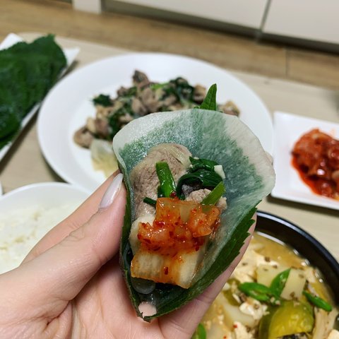 김치놓는거랑 깻잎,무쌈 따로놓은거보면