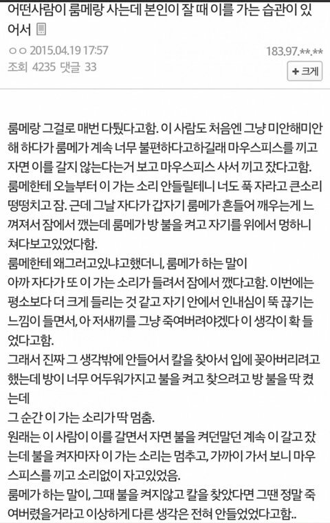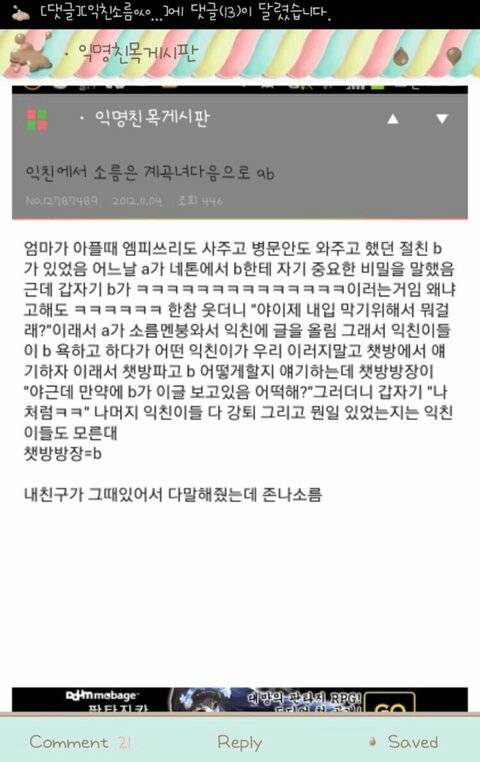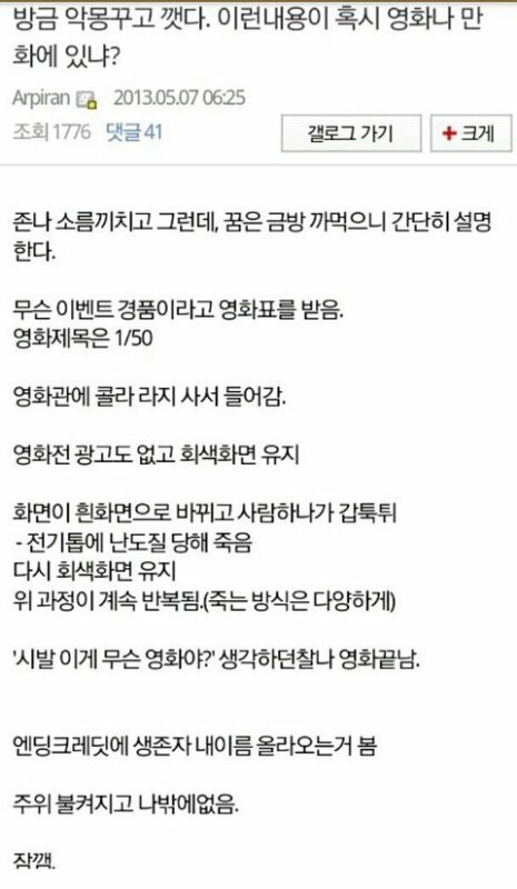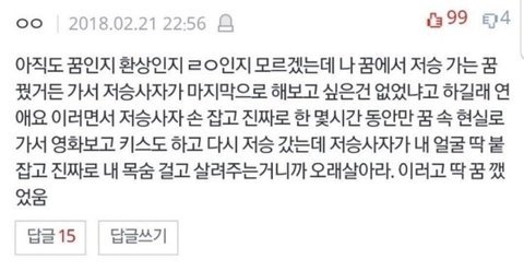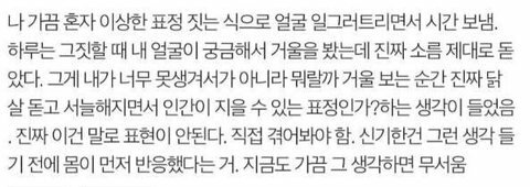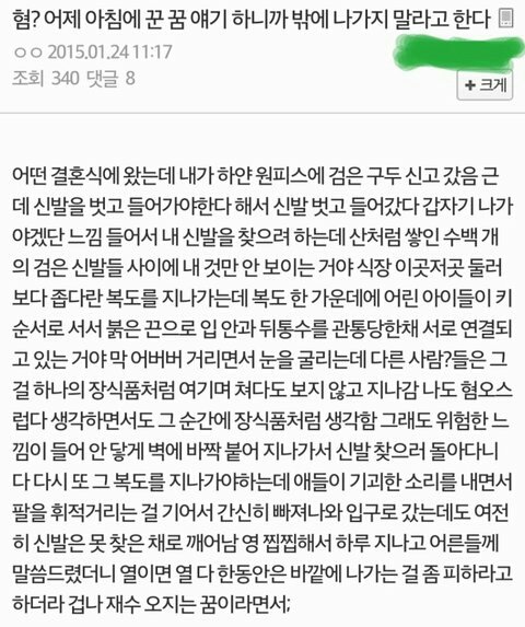 난 지금 고2인데... 이름이 서ㅇ 이거든. 근데 울 엄마는 나 14살 이후부터 나를 집에서 서ㅁ으로 불렀어. 그래서 어릴때는 엄마 난 서ㅇ 인데 왜 서ㅁ으로 불러? 라고 물었는데 엄마가 정말 들리지도 않는 것 처럼 무시하고 답을 안해줬어 그 질문은.. 아빠한테 엄마가 왜 날 서ㅁ으로 부르냐고 물어보면 늘 엄마가 그렇게 부르고 싶은 가봐. 엄마가 싫어하니 더이상 묻지 말자. 라고 대답해줬거든. 그래도 엄마가 서ㅁ아 하면 서ㅇ 이라고. 하면서 늘 내 이름을 내가 지켰(?)어. 근데 그냥 못들은척 하더라고... 그러다가 작년 연말에 내가 정말... 어떻게 살았는지 아직도 잘 모르겠는데 인도로 올라오는 오토바이에 치이고, 그대로 도로로 튕겨져나가서 우회전 하던 차에 치였거든. 뇌출혈 장난 아니었대. 깨어나니까 4일이나 지나있었고. 근데 정신 차렸을 때 엄마가 날 서ㅇ아! 하면서 불러주는거야. 진짜 오랜만에. 그래서 왜 날 서ㅁ으로 불렀는지 나중에 물어봤는데 엄마가 다니는 절에서 몇년전에 우리가족 신년 운세 볼때 앞으로 내가 피를 아주 많이 흘리게 될텐데 피 흘리고 나서 깨어날때까지 서ㅇ란 이름은 잊고 서ㅁ으로 부르라고. 학교에선 어쩔 수 없어도 엄마는 무조건 서ㅁ으로 불러야 한다고 하더래. 그래서 엄마가 그날부터 몇년을 날 서ㅁ 으로 부른거야. 그렇게 안부르면 내가 피웅덩이에 빠져 죽을 운명이라면서. 근데 그 스님이 부적을 써달래도 안써주고, 기도? 그걸 해달래도 안 해준다는 거야. 심지어 그날 일종의 복채도 안받겠다고 그랬대. 그냥 무조건 내가 피웅덩이 속에서 살아 돌아올때까지 서ㅁ으로 부르고, 그게 성공하면 그때 같이 절에 와서 기도를 올리라고. 그래서 나 지금은 통원치료 중인데.. 그때 어깨뼈가 조각나가지고.. 이거 다 나으면 엄마랑 절에 기도 드리러 갈거야. 그때 가서 궁금한거 다 물어보고 싶은데.. 물어볼 수 있는 분위기일지 모르겠네