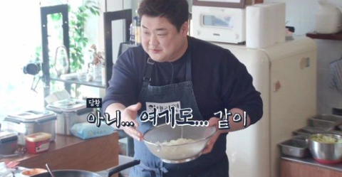 디저트를 만들고 있는 김준현