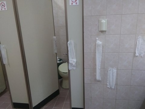 저렇게 화장지를 스카치테이프로 곳곳에 붙여놨는데 사진에 나온거말고도 더 붙여놨음... 내가 한 20장 뜯어냈는데 정상적인 행동은 확실히 아닌것같지?;;