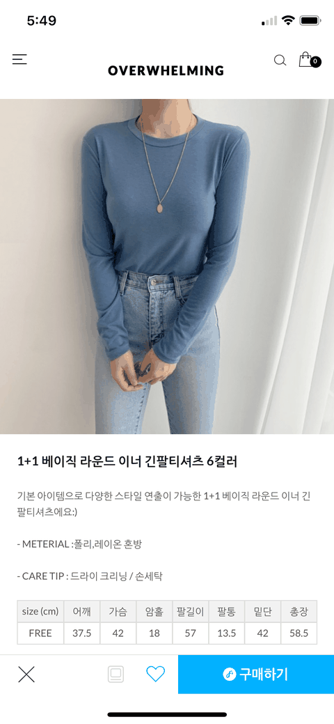 이런 기본으로 안에 입을 수 있는 아이템들은 색깔별로 여러개 쟁여놓는게 좋아~