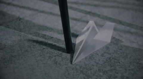 하얀색이었던 종이 비행기가 검은색 종이 비행기로 완전히 물들어버리고