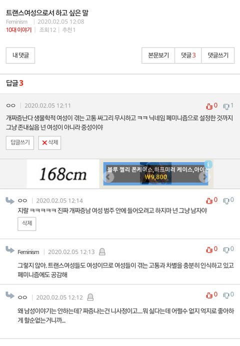 ㅋㅋ 뭘 페미니즘을 어떻게 이해해 생물학적 여성이 아닌데