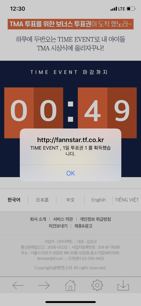 팬앤.스타 추가투표권 시계 떴다 받아!!!