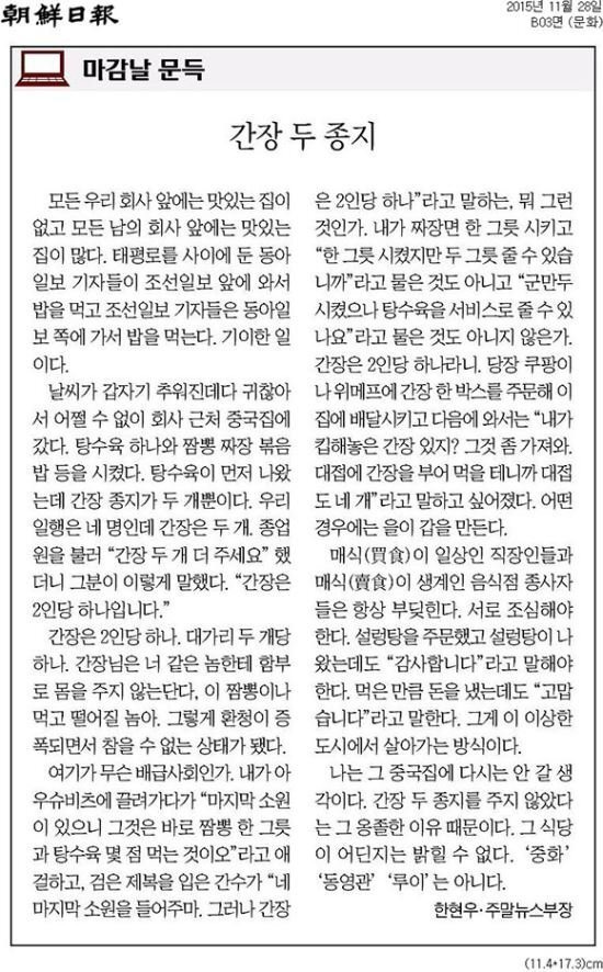 저런 글에 지면을 낭비할 여력이 있다니 한심한 신문이네
