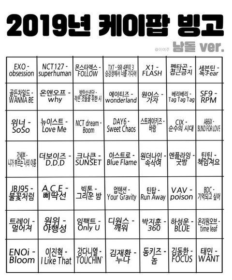 2019년 케이팝 빙고하자