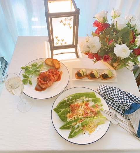베이컨 양파링 &캐비어 카나페 &시저 샐러드