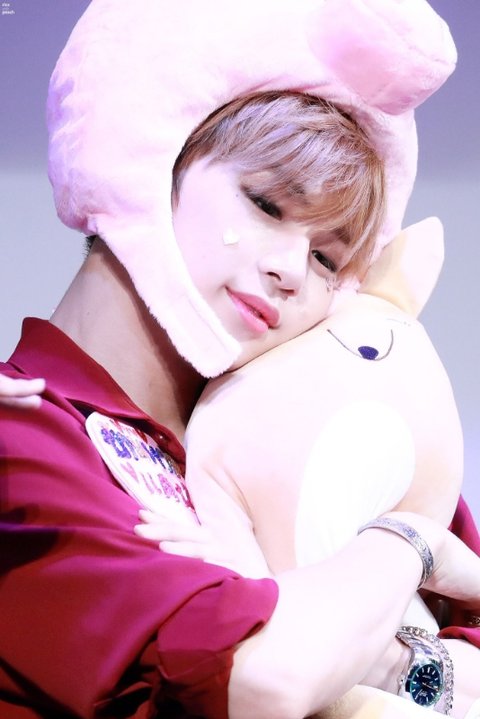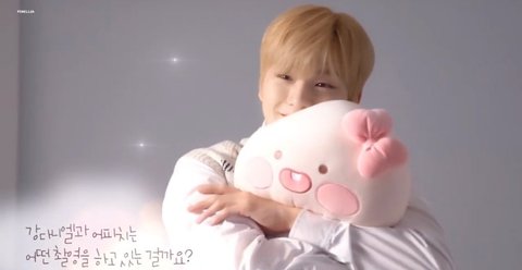 강다니엘이 인형을 안고있을 때