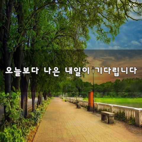 ♥ 오늘보다 나은 내일이 기다립니다 ♥ㅤ오늘보다는 내일이, 내일보다는 그 다음 날이 새롭기를 바랍니다. ㅤ사람이란 새롭게 변화하는 것을 좋아하기 때문입니다. 변화 없는 삶은 잡을 수 없는 뜬구름과도 같습니다. ㅤ지금보다 더 나은 내일을 위해서라면 망설이지 말고 자신과 자신이 아끼고 사랑하는 사람을 위해 새로운 일에 열정을 가져야 합니다. ㅤ사랑은 새로운 것을 기대하고, 들뜨게 합니다. 사랑을 내 안으로 불러들이십시오. 더 나은 내일을 위해, 사랑하는 사람을 위해 ……. ㅤ역동적인 사랑은 새로운 변화를 가져다 주고, 그 변화 속에 값진 삶을 누릴 수 있게 해 줍니다. ㅤ사랑하는 사람이 늘 새로워지기를 원한다면 아낌없는 당신의 변화된 사랑을 보여 주십시오. ㅤ살아 있음이 얼마나 값진 일인지 알게 될 것입니다. ㅤ- 김옥림<사랑하라 오늘이 마지막인 것처럼>중에서 -