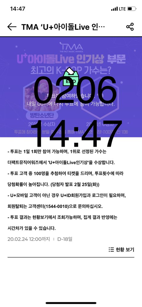 더 팩1트 어워즈 인기상 투표(U+ 아1이돌 live어플)
