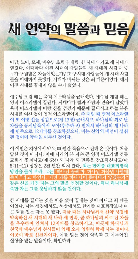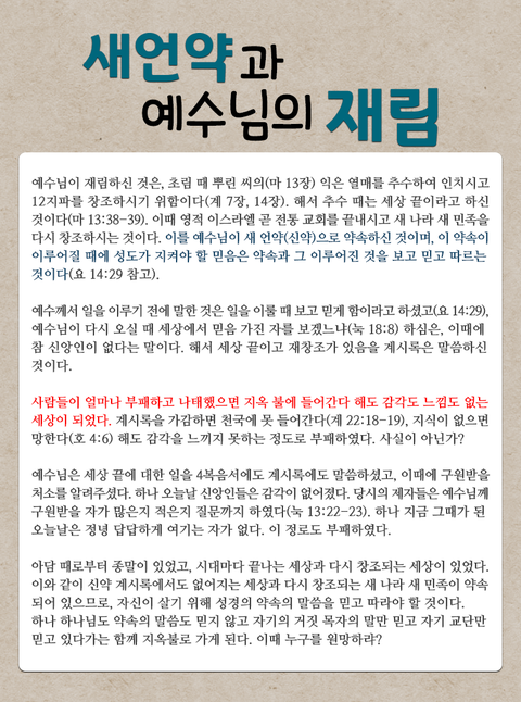 성경에 기록된 예수님의 약속의 말씀을 듣고 깨달아 천국에 이르시길 바랍니다