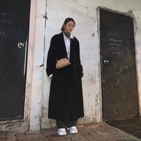 이런 롱코트에 가방하나만 걸쳤는데 무엇...