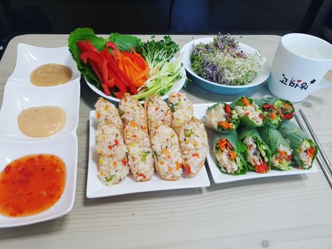 이건 휴무때 눈뜨자마자 밥먹을려구 만든 유부초밥,월남쌈ㅋㅋ