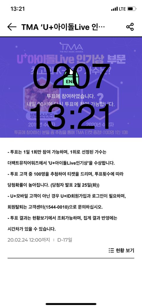 더 팩1트 어워즈 인기상 투표(U+ 아1이돌 live어플)