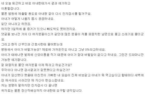 3편 : 아내에게 이 사실을 알렸더니 손을 모으고 빌더라. 본인에 대해 험담하는 사람 싹다 고소하겠다. 3일뒤 검사결과지 인증하겠다.