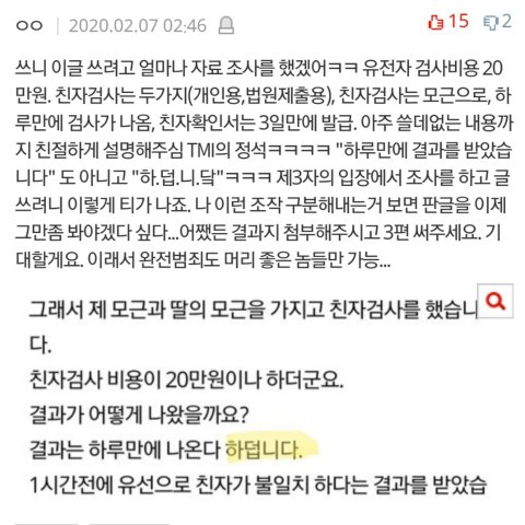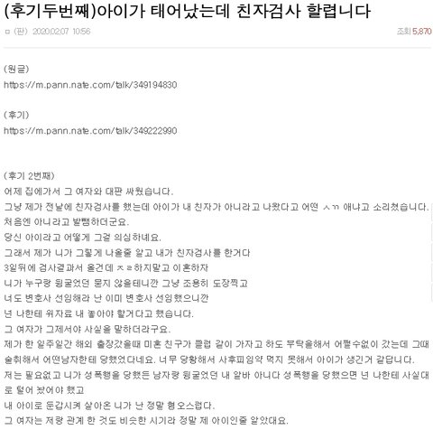 저는 이런 여성혐오 하려고 친자검사 자료까지 조사하여 조작하는 한국남자들 보면 어떤 인생을 사는지 궁금합니다. 인생 참 유감스럽네요ㅠㅠ