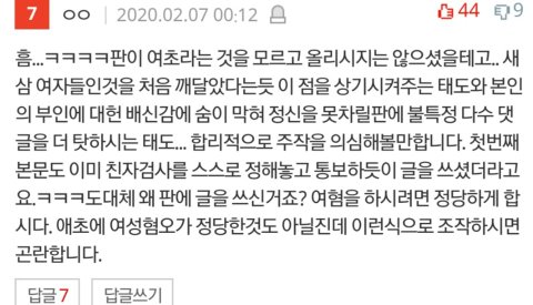 >> 결론 : 주작을 안하면 여혐을 못한다.