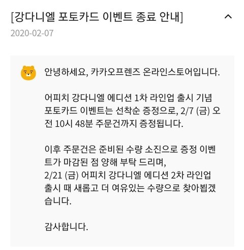 이후 주문건은 준비된 수량 소진으로 증정 이벤트가 마감 되었습니다.