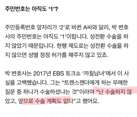 수술 안해도 여자로 인정해달라는 트젠