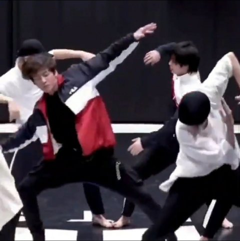 안무연습 영상에서 발을 밟은 사람은 누구지?