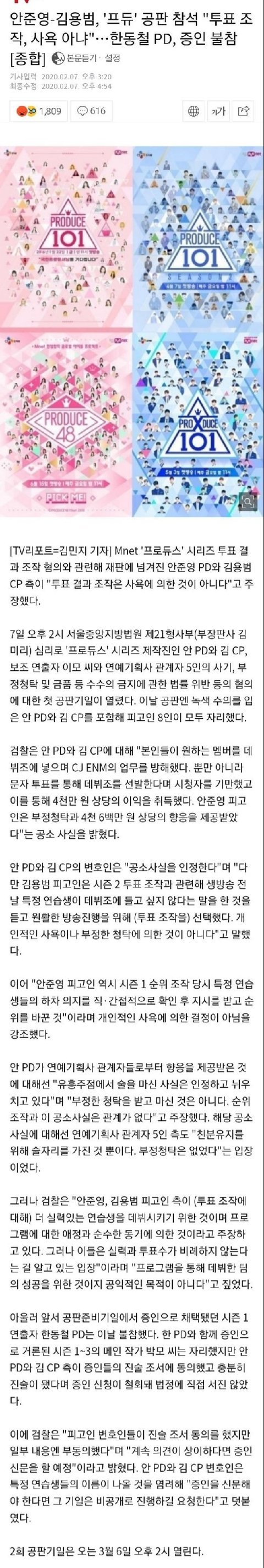 엑스원팬들아 너넨 조작 변동사항없어