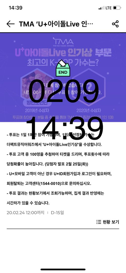 더 팩1트 어워즈 인기상 투표(U+ 아1이돌 live어플)