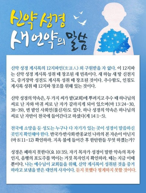요한계시록은 예수님께서 약속하신 새언약(예언)으로서 오늘날 신앙인들과 하신 약속입니다.이에 천국을 간절히 소망하는 신앙인이라면 이 예언이 이루어질 때 보고 듣고 믿어야 (요 14:29) 합니다.