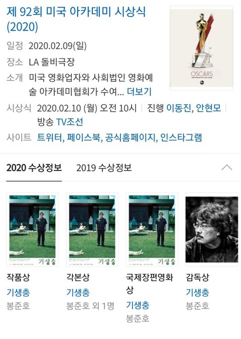 그리고 기생충이 아카데미 각본상을 수상함 ㄷㄷㄷ