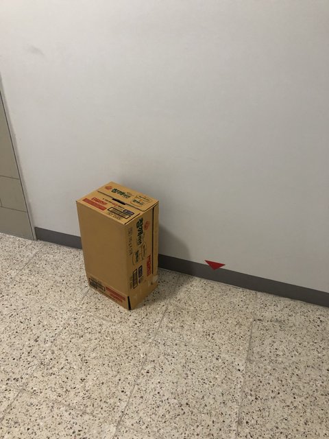 박스가 빈박스라 의심스러워서 아침에 박스를 발로 차서 밀었더니 이런 화살표 표시가 있었습니다