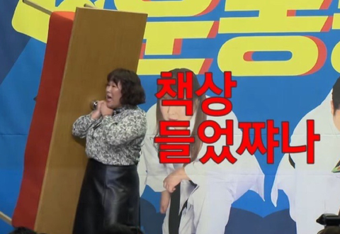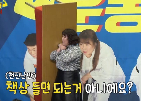 해맑게 책상 들어서 좋아하는 김민경ㅋㅋㅋㅋ