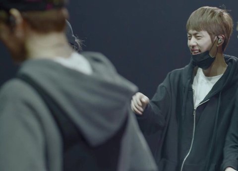 쓰러진 동생 물병 세워주는 석지니