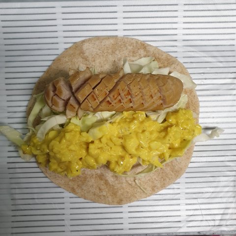 머스터드 소스넣은 닭가슴살소시지또띠아 에요. 맛있어보이죠?