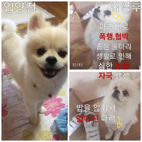 안녕하세요.예전에도 글을 쓴적이 있으나 별다른 조언을 못구해서 다시 글을 적습니다.저는 전남자친구와 동거를 한 사이로 여름부터 겨울까지 전남자친구가 강아지가 학대하는것을 보았습니다.현재 전남자친구는 저의 강아지를 데리고 있습니다.지금부터 상황설명을 간단히 하겠습니다.제친구가 동거초반에 전남자친구가 동물학대를 하는 사람임을 인지못하고 강아지를 입양하였습니다.지금부터 이강아지를 뽀삐(가명)라고 부르겠습니다.전남자친구는 뽀삐의 몸을 파리채로 때려 뽀삐를 구석에다가 몰아세우고 제가 말릴때에는 파리채로 철장을 때리며 위협감을 주었습니다.(뽀삐한테 화는 났는데 제가 말려서 이런행동을 보인것같습니다.)뽀삐가 전남자친구팔에 마운팅을 할때는 뽀삐를 밀치듯이 던졌습니다.그리고,방이 연기로 가득차 사람조차도 숨을 못쉴정도로 담배를 피는것은 기본으로,울타리안에 가둬서 기르고 뽀삐를 향해 장난식으로 담배연기를 뿜을때도 있습니다.전남자친구와 좋게 헤어진게 아니라서 받으러가긴 곤란합니다.그리고,전남자친구는 금전적으로 강아지를 키울능력이 없고,환경도 좋지않습니다.또한,강아지에 대한 배려심과 지식이 전혀없어서 아무렇지않게 설탕과소금등을 먹입니다.현재는 강아지의 사진을 전남자친구로부터 받아냈으나 상태가 좋지않습니다.아래사진 참고부탁드려요.전남자친구는 뽀삐를 책임지고 싶으면 본인이랑 사겨라고 합니다.저는 뽀삐를 구하고 싶으나 전남자친구랑 사귀고 싶진 않습니다.뽀삐를 구해주세요.ㅠ