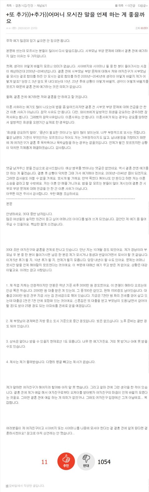 [원본지킴이]어머니 모시잔 말을 언제 하는 게 좋을까요?