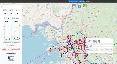 코로나 바이러스 확진자의 이동경로를 알 수 있는 지도가 나왔네요