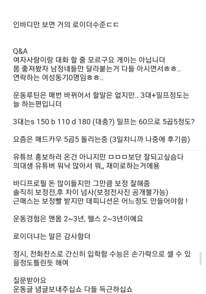 의대갈만큼 공부하는 인내심과 끈기가 있는 사람인데 운동도 그리했겠죠..약먹어 만든 몸은 아닐듯