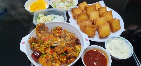 멘보샤만 하기 아쉽다며 깐풍기도 만들었어요