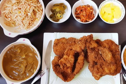 직접 두드려서 만든 돈까스와 카레