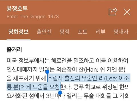 이소룡 나온 영화 내용이래
