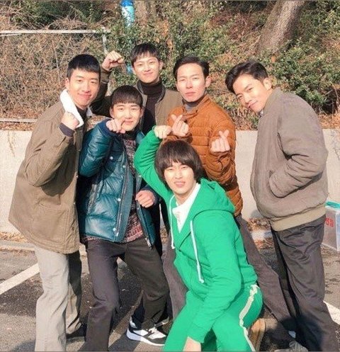 드라마에 같이 출연 중인 20대 배우들과 사진을 찍어도