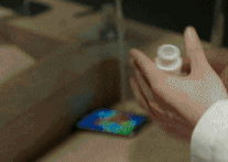 통에서 꺼낸 핸드폰을 물로 헹구고,
