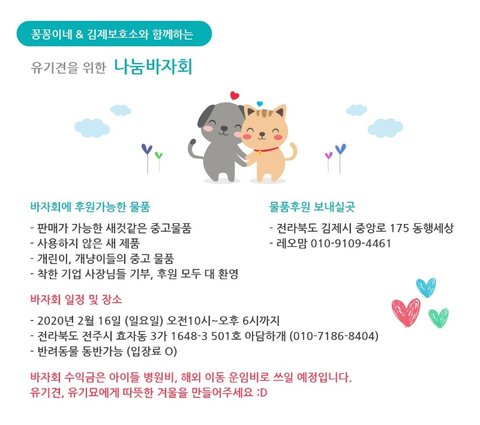 16일(일요일) 전주 애견카페 "아담하게"에서 김제보호소&꽁꽁이네가 함께 유기견돕기 바자회를 개최합니다