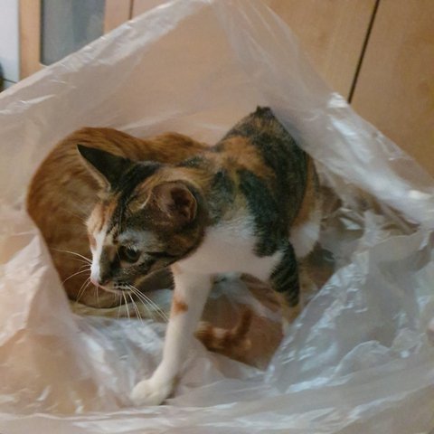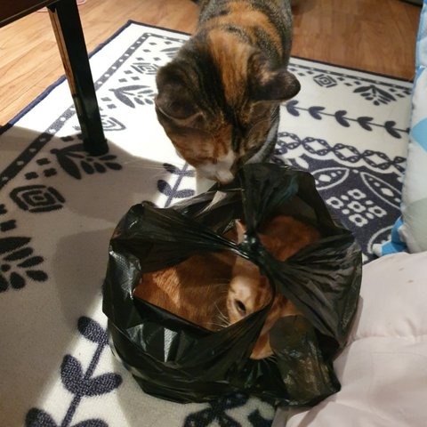 검은봉투로 옮겨온 토미를 쳐다보는 루미에요