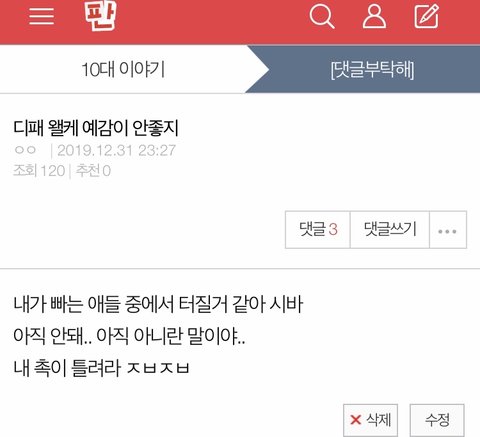 내가 촉이 되게 좋음 왠진 모르겠는데