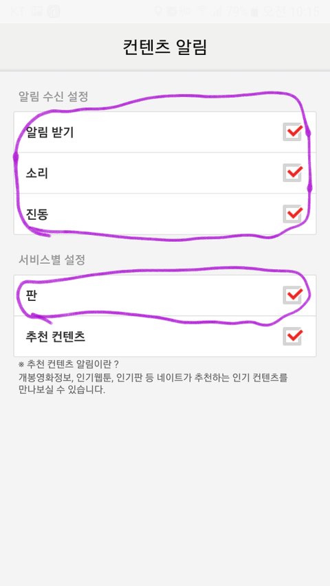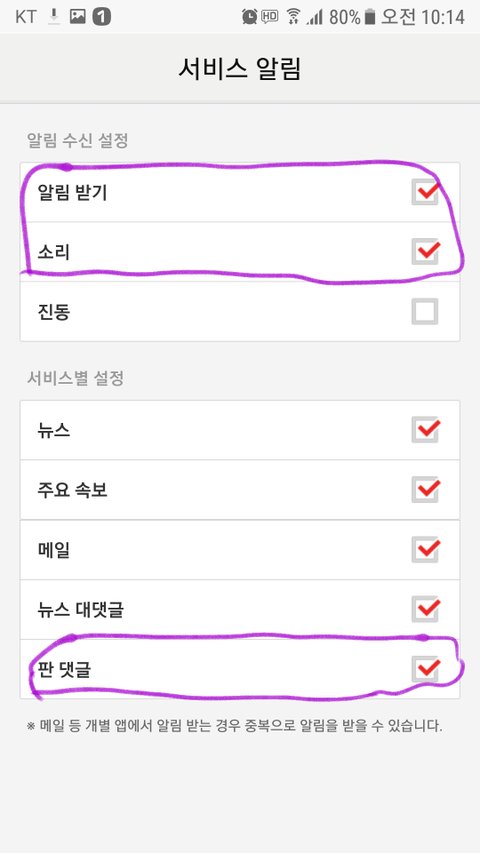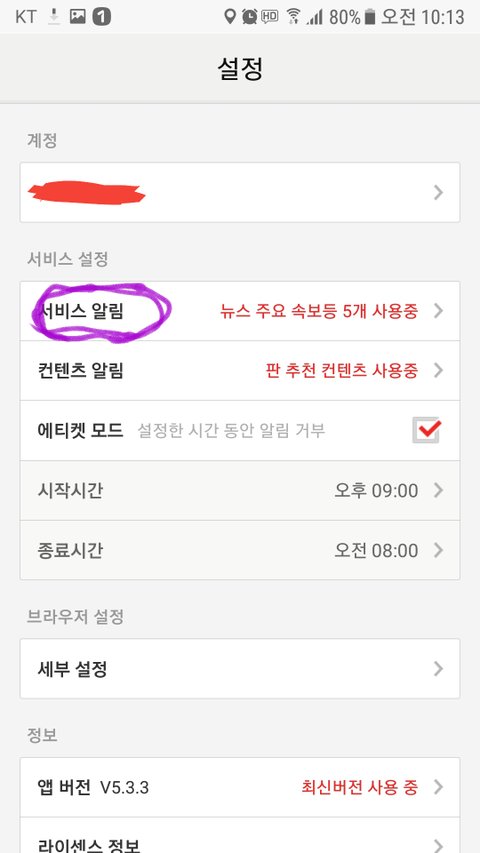 판앱을 사용하지않는 브야들을 위한 알림설정방법