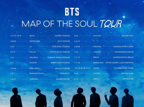 투어데이터에 올라온 방탄 북미 스타디움 투어 예매 현황