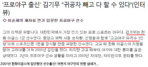 또한 그는 "이글스에 있을 때 류현진이 2년 후배로 입단했고,