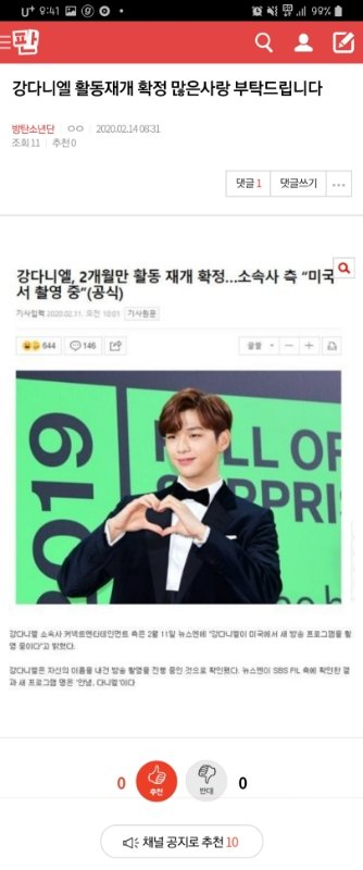 밑에 강다니엘 여기서봐